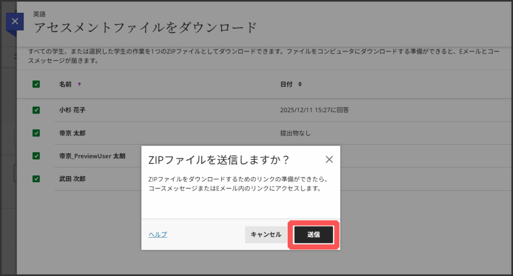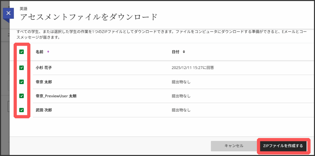 5.ダウンロードしたい学生にチェックを入れます.