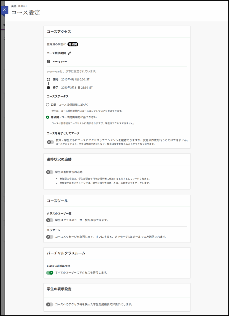 コースを学生に公開するか否かを設定します.