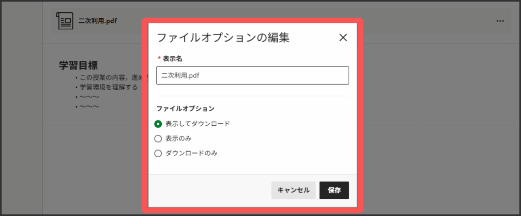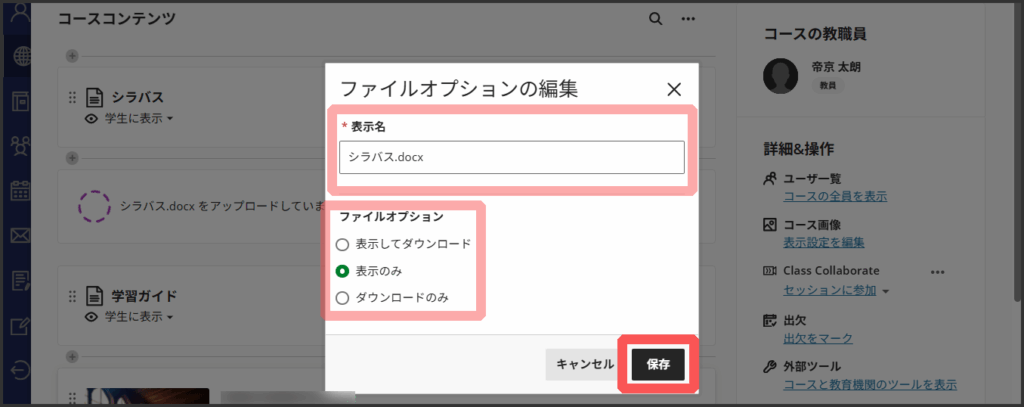 5.表示名や表示のオプションを設定し,「保存」をクリックします.