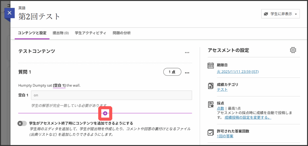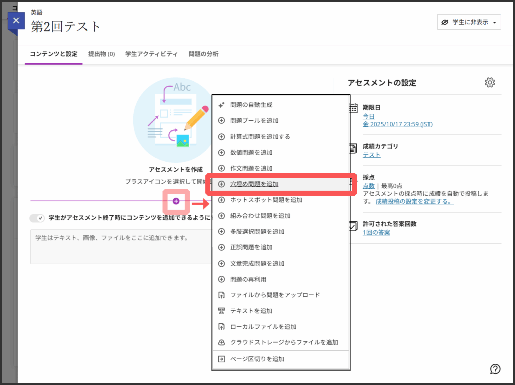 から「穴埋め問題を追加」をクリックします.