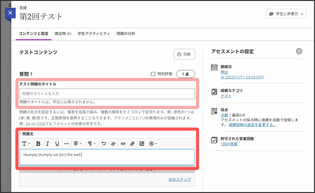 2.「問題文」に問題を入力します.
