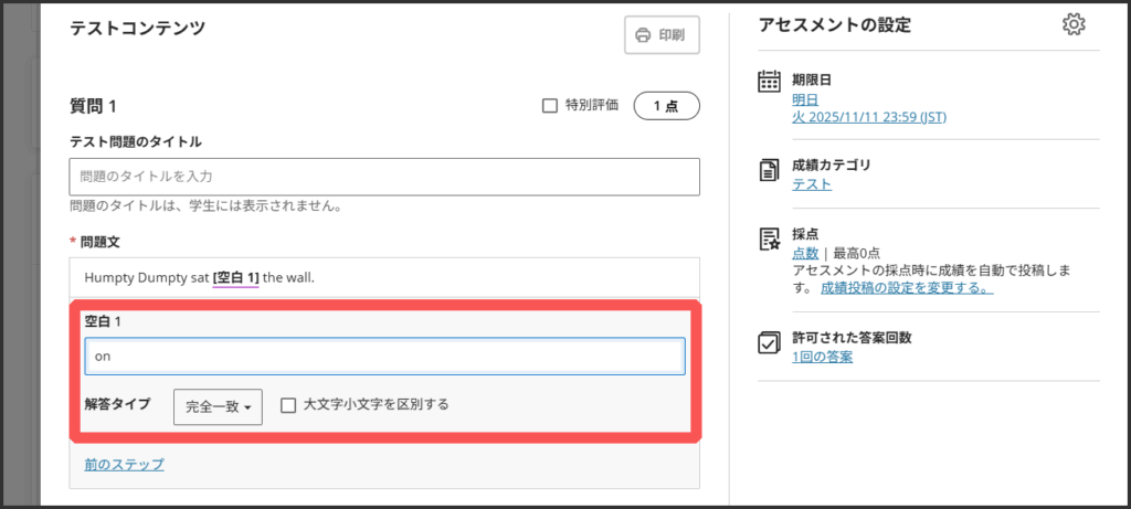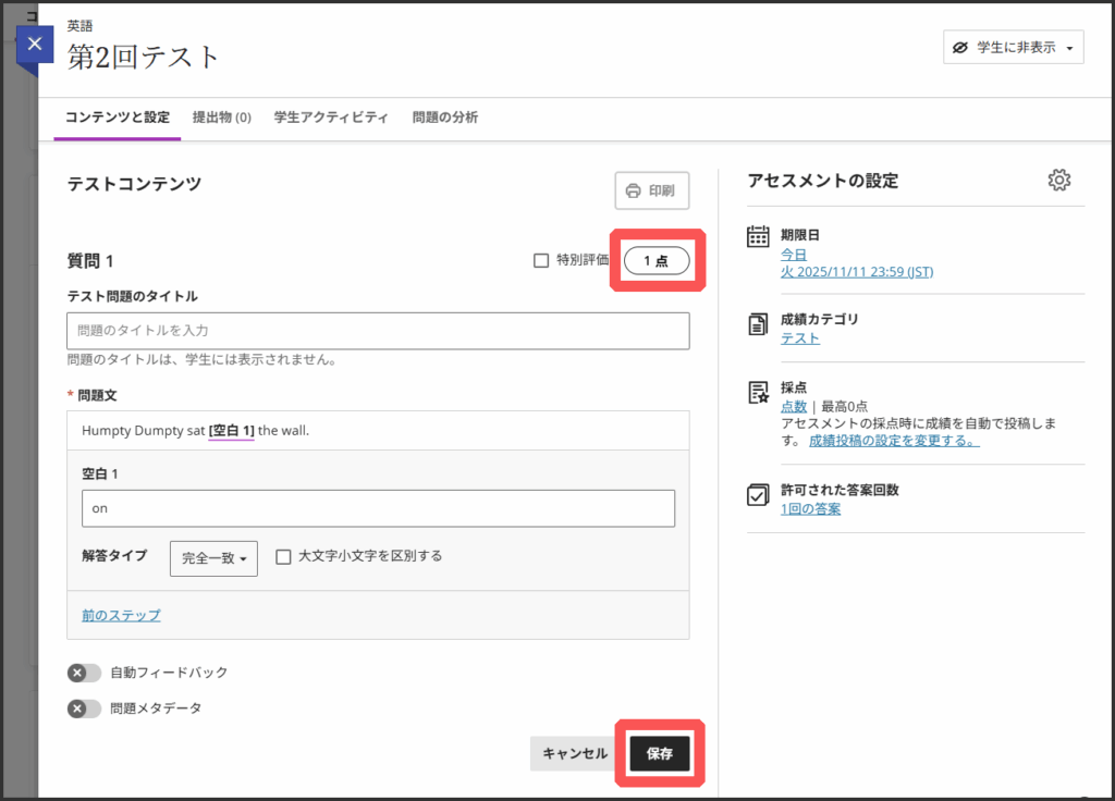 5.必要に応じて配点を変更します.初期値は1点です.