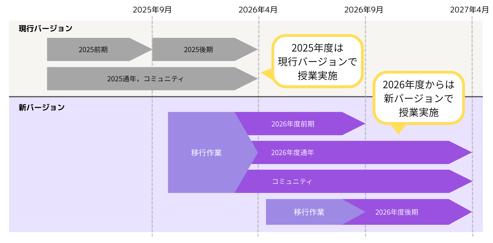 - 10月頃から,2026年度以降に利用を希望する新バージョンのコース・コミュニティの作成を開始します.