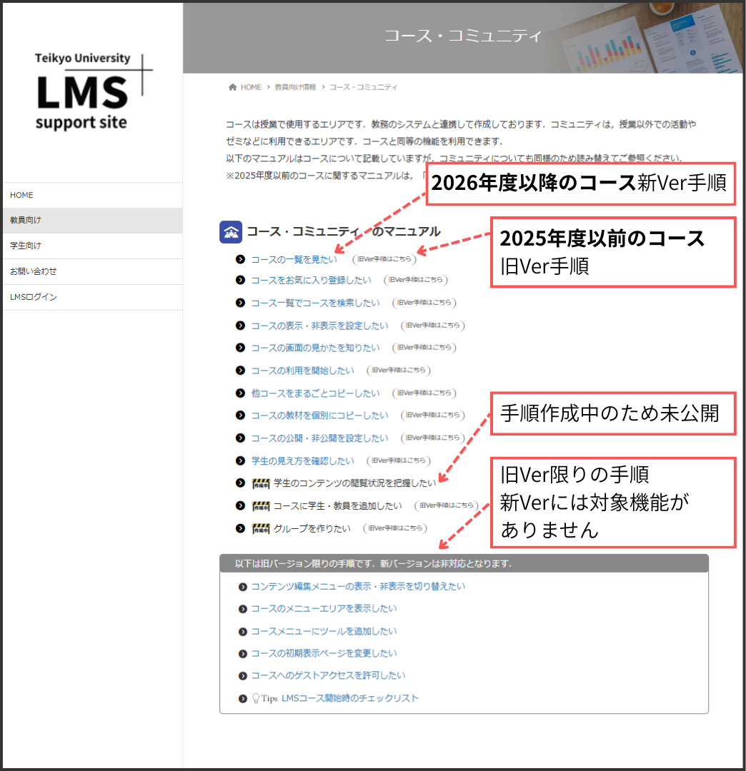 • コース・コミュニティのバージョンアップに伴う手順変更に対応