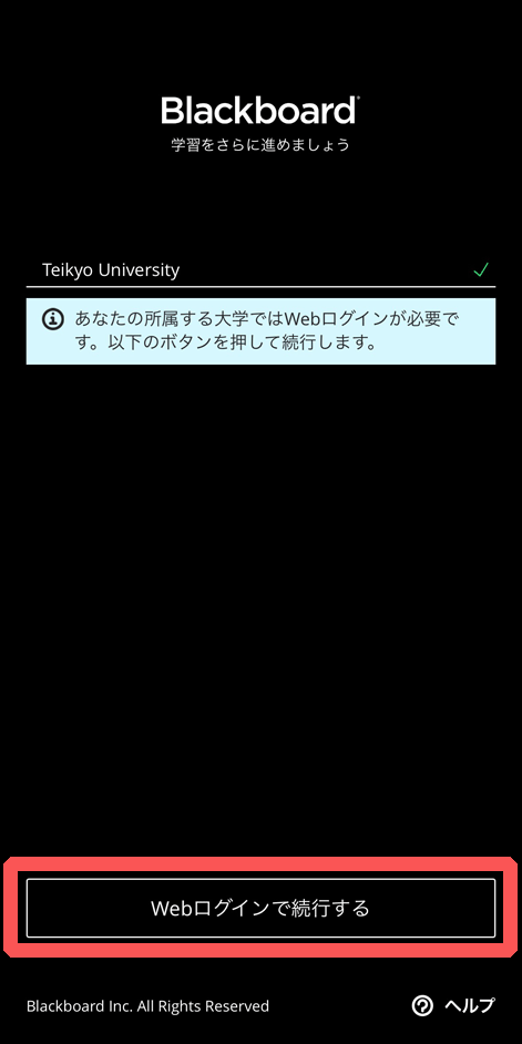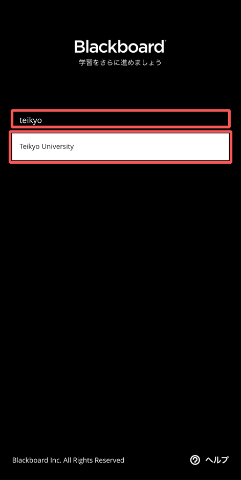 1.アプリを起動し,「teikyo」を入力し,「Teikyo University」をタップします.