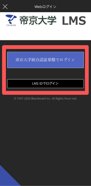 3.「帝京大学統合認証基盤でログイン」,または「LMS IDでログイン」をクリックし,ログインします.