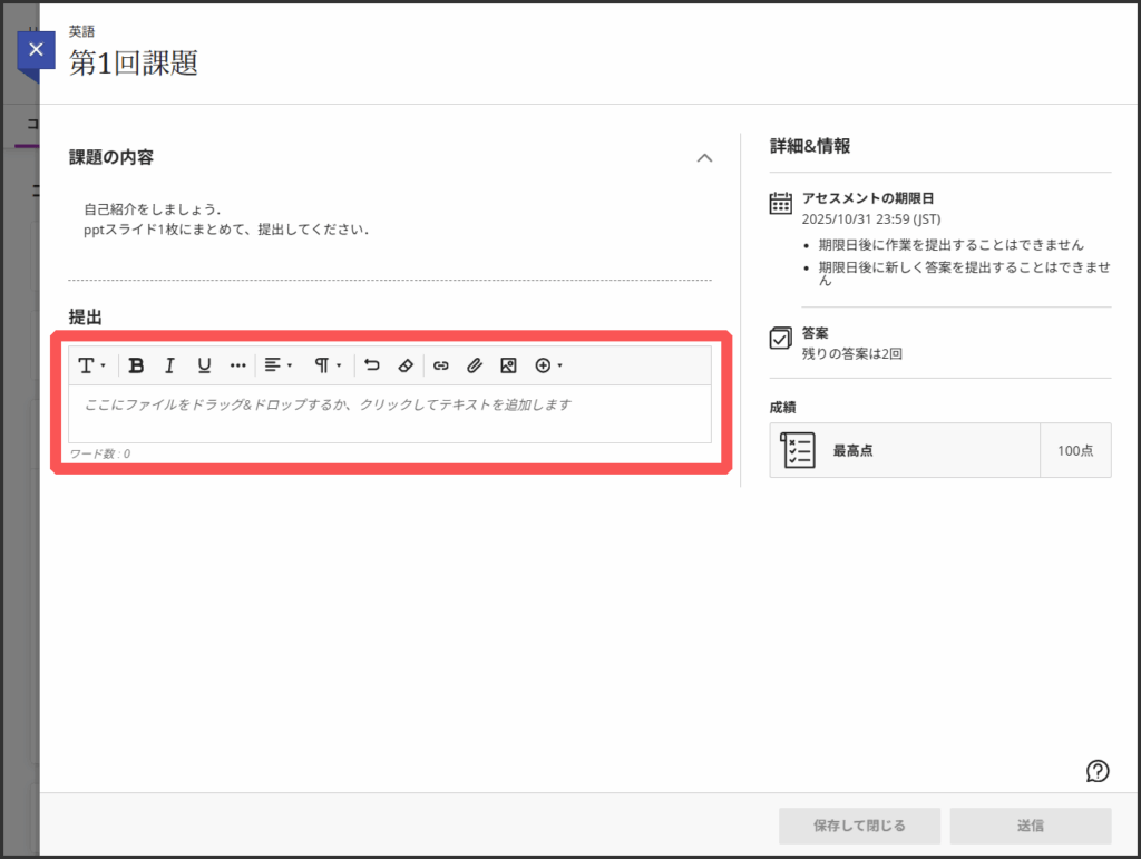テキストボックス内に直接入力をします. - レポート等のファイルを添付する場合