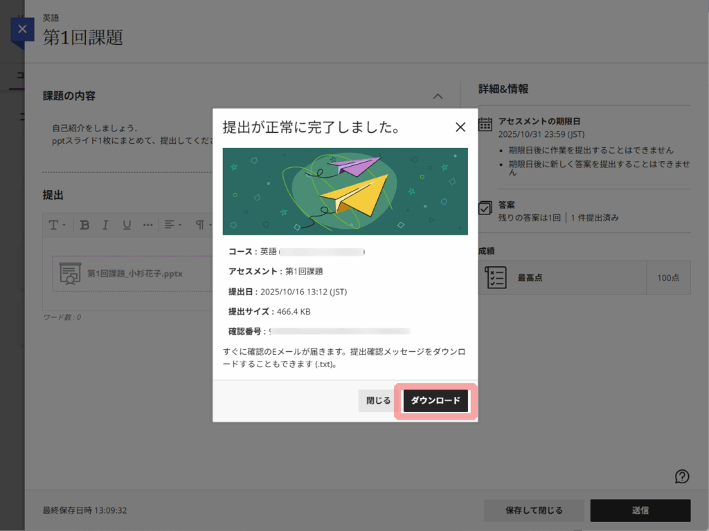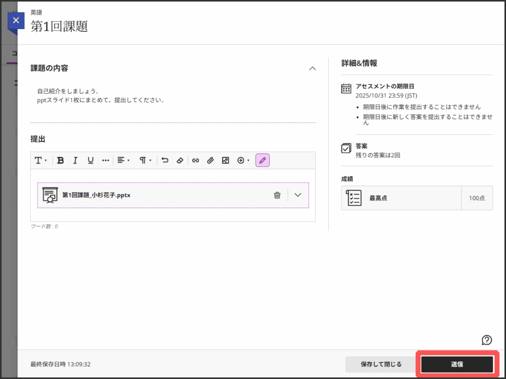 4.提出前に内容を確認して,問題がなければ「送信」をクリックします.