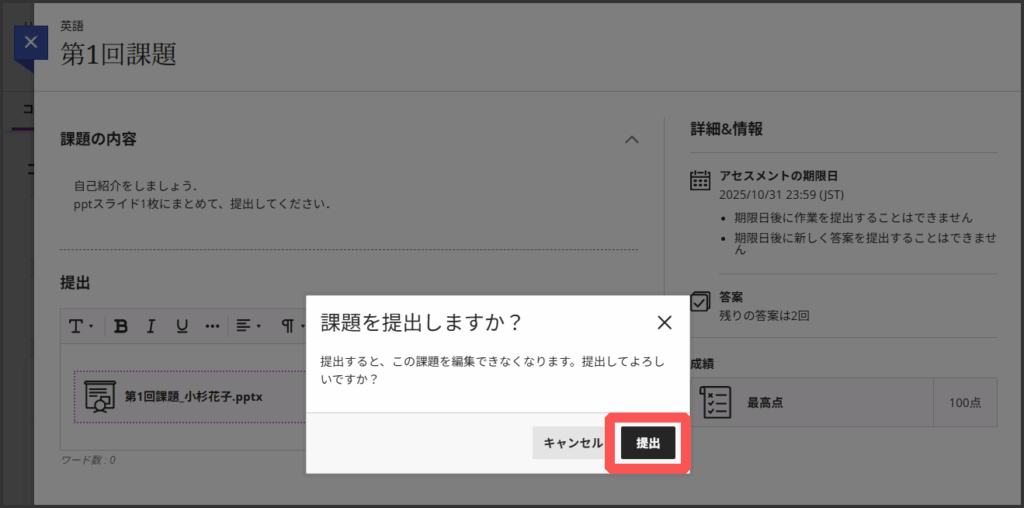 5.送信前の確認画面が表示されます.「提出」をクリックします.