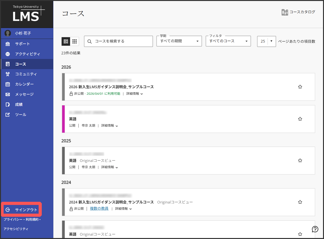 3.認証後,自動でLMSの画面に切り替わります.